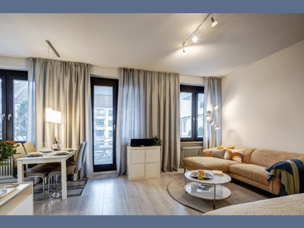 Möbliertes Wohnen auf Zeit: Moderne, offen gestaltete 2-Zimmer-Wohnung mit Terrasse - München-Bogenhausen Schöne, neuwertige Wohnung, die durch eine luxuriöse Innenausstattung besticht. Die Wohnung v...
