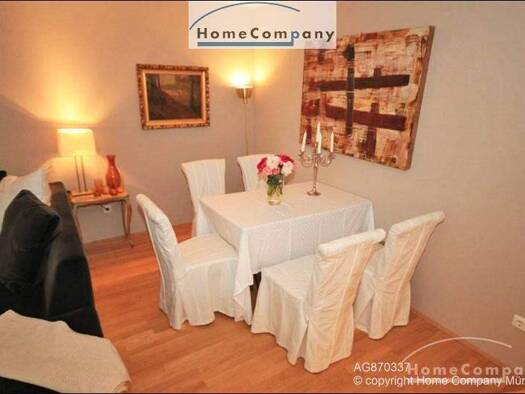 Hochwertig möblierte 3 Zimmer Wohnung in München-Bogenhausen. Geschmackvolle Möblierung aus einer Mischung von Antiquitäten und Designer Möbeln. Großzügiges Wohnzimmer mit Ecksofa und Esstisch für 4 ...
