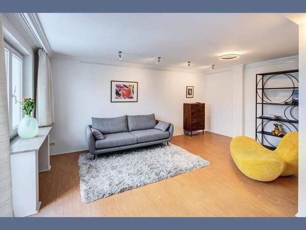 Weitere Informationen, viele hochauflösende Fotos und ein Video zu diesem Objekt finden Sie unter: https://www.mrlodge.de/wohnungen/detailansicht/14528/ See offer in English: https://www.mrlodge.com/search/detailed-view/14528/ Zimmer: Wohnzimmer mit Sitzgruppe, Zweites Wohnzimmer, Esszimmer, Schlafzimmer mit Doppelbett, Gästezimmer mit Bettsofa und Arbeitsbereich, Arbeitszimmer, Bad mit Badewanne Bad mit Dusche Bodenbelag: Fischgrätparkettboden, Fliesenboden Möblierung: sehr gut, individuell Kü...