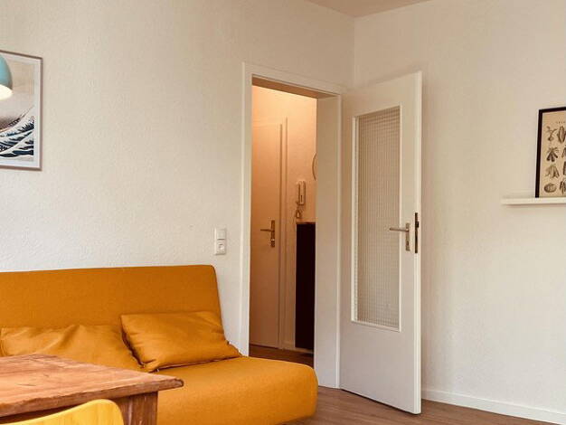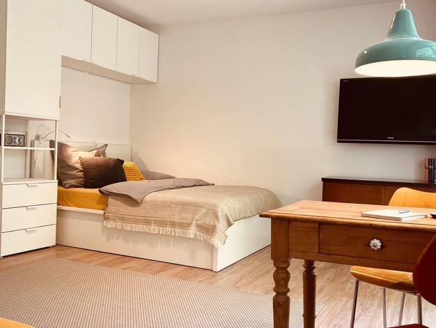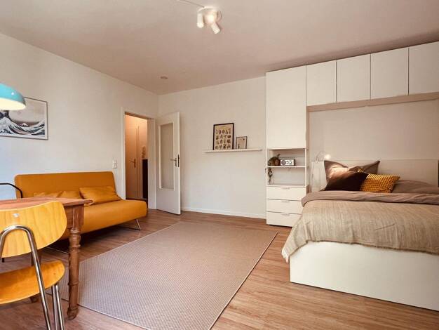 Dieses moderne & stilvoll eingerichtete Apartment besteht aus einem großen Zimmer mit sehr gut ausgestatteter Küche (Herd, Spülmaschine, Kühlschrank, Besteck, Geschirr, Töpfe, etc.), Flur & modernem Bad. Alles ist geschmackvoll und funktional eingerichtet, um sich hier wie zu Hause zu fühlen. Die Wohnung ist voll möbliert und enthält alles nötige Equipment (Waschmaschine, Bügeleisen, Staubsauger, Fön, etc.). Ein Einbauschrank bietet genügend Platz zum Verstauen von Kleidung und anderen ...