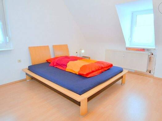 Ideal nach Erlangen: Schön möblierte 3-Zimmer Dachgeschosswohnung mit WLAN in wundervoller, ruhiger Lage im Norden Nürnbergs/Thon. Die Möblierung des Wohnzimmers besteht aus einer hellgrauen Schlafcouch, schwarzen Fernsehsessel, Couchtisch, weißen Sideboard in Hochglanz mit Flatscreen TV sowie passenden Hängeschränken. Das Schlafzimmer ist eingerichtet mit einem französischen Bett (1,40x2,00 m), Nachtkästchen mit Lampe und einem 2-türigen Kleiderschrank. Das 3. Zimmer mit einem Esstisch und 2 S...