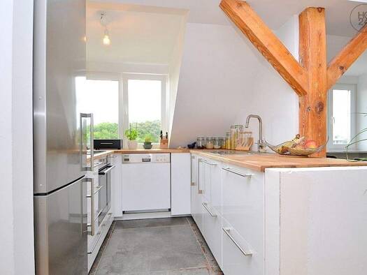 Direkt in der Altstadt: Modern und geschmackvoll möbliertes 1-Zimmer-Apartment mit WLAN direkt in der Nürnberger Altstadt. Die Möblierung des Zimmers besteht aus einem französischen Bett (1,40x2,00 m), einem Nachtkästchen, eingebauten Regalsystem, Sideboard mit Flatscreen TV, Couch, Couchtisch sowie einem Esstisch mit 2 Stühlen. Die offene Küchenzeile ist mit allen Utensilien des täglichen Bedarfs ausgestattet wie Cerankochfeld, Backofen, Kochutensilien, Kühlschrank, Wasserkocher etc. Das hell ...