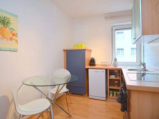 Gemütliche und schön möblierte 2-Zimmer Wohnung mit WLAN ruhig gelegen in einem Rückgebäude in Nürnberg St.-Johannis. Das helle Wohnzimmer ist ausgestattet mit einer grauen Stoffcouch, Glastisch, Low...