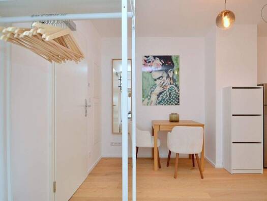 Modern möbliertes 1-Zimmer-Apartment mit WLAN, Balkon und Terrasse im beliebten Stadtteil St.-Johannis in Nürnberg. Die Möblierung des Wohn- und Schlafzimmers besteht aus einem Hochbett (1,40x2,00 m)...