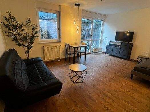 Modern möbliertes und renoviertes 1-Zimmer-Apartment mit WLAN im beliebten Stadtteil Nürnberg/Wöhrd. Die Möblierung des Zimmers besteht aus einem französischen Boxspringbett (1,40x2,00 m), Nachtkästchen, Sideboard, Kleiderschrank, hellgraue Couch mit Schlaffunktion, Beistelltischset, Schreibtisch und einem Flatscreen TV. Die separate Einbauküche ist mit allen Utensilien des täglichen Bedarfs ausgestattet wie Cerankochfeld mit Dunstabzug, Miele Backofen, Geschirrspüler, Kochutensilien, Kühl-Gefr...