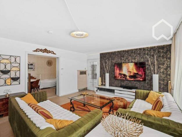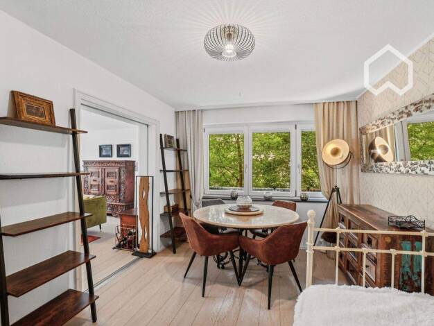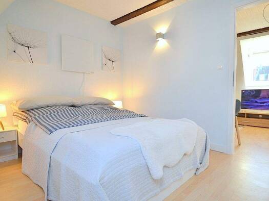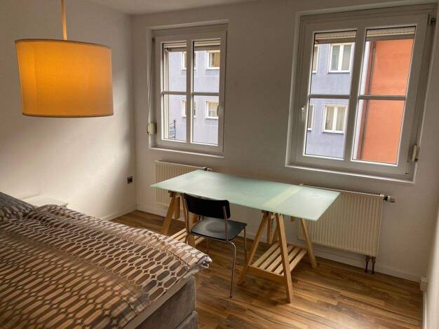 Modern möbliertes und renoviertes 1-Zimmer-Apartment mit WLAN im beliebten Stadtteil Nürnberg/Wöhrd. Die Möblierung des Zimmers besteht aus einem französischen Boxspringbett (1,40x2,00 m), Nachtkästchen, Sideboard, Kleiderschrank, hellgraue Couch mit Schlaffunktion, Beistelltischset, Schreibtisch und einem Flatscreen TV. Die separate Einbauküche ist mit allen Utensilien des täglichen Bedarfs ausgestattet wie Cerankochfeld mit Dunstabzug, Miele Backofen, Geschirrspüler, Kochutensilien, Kühl-Gefr...