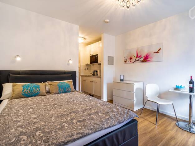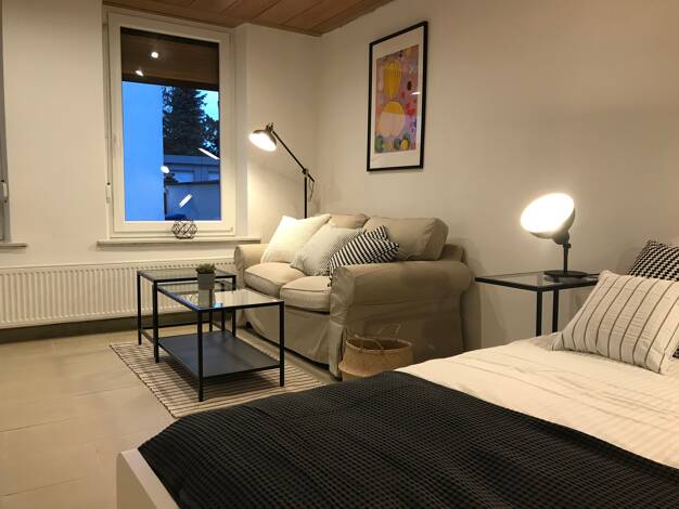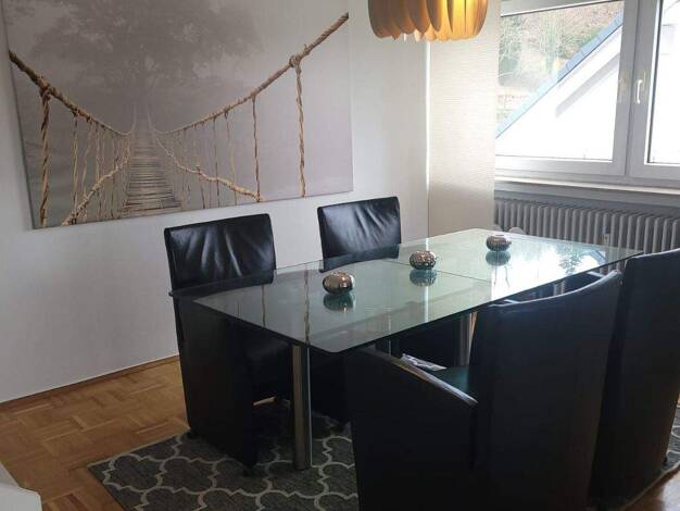Die ruhige und zentrale Lage der Wohnung bietet optimale Anbindung zur Autobahn A 60 sowie dem öffentlichen Nahverkehr. Der modern eingerichtete Wohnraum verfügt über ein gemütliches Klappbett (90 x ...