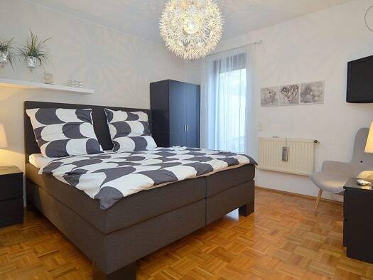 Die ruhige und zentrale Lage der Wohnung bietet optimale Anbindung zur Autobahn A 60 sowie dem öffentlichen Nahverkehr. Der modern eingerichtete Wohnraum verfügt über ein gemütliches Klappbett (90 x ...