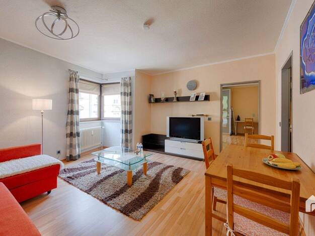 Auf einer Fläche von ca. 125 m² bietet die Wohnung höchsten Komfort: Es gibt ein geräumiges Wohnzimmer mit offener Küche, ein Doppelbett, das durch Modulschrank vom Schlafbereich getrennt ist, sowie ein modernes Duschbad. Das Apartment beeindruckt durch seine Designer-Möbel und -Elemente sowie eine Raumhöhe von über drei Metern. Besonders hervorzuheben ist die top ausgestattete italienische Designerküche mit Dampfbackofen, Heißluftherd, großer Gefrierkombi und Spülmaschine, welche das Herz eine...