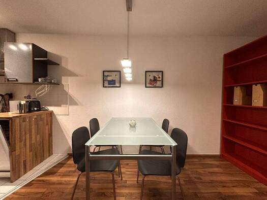 Es handelt sich um eine hochwertig möblierte 58 m² Wohnung, welche aus zwei Zimmern, Küche, Bad, Diele und einem kl. Balkon besteht. Die Wohnung befindet sich in der 1. Etage. Ein Aufzug ist vorhanden. Die Küche ist eingerichtet mit einer Spülmaschine, einem Glaskeramik Kochfeld, Backofen, Mikrowelle sowie Wasserkocher, Kaffeemaschine, Geschirr, Gläser, Töpfe und Besteck. Das offene Wohn-/Esszimmer besteht aus einem Teakholztisch mit 4 Stühlen, einer Couch mit kl. Tisch und einem kl. Teppich, F...