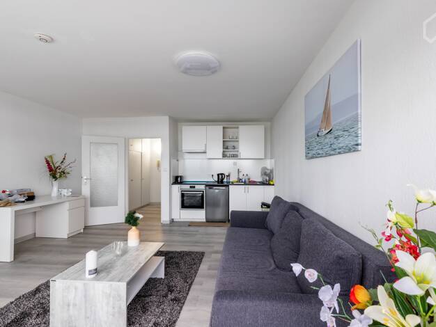 Dieses möblierte 65m² große 2-Zimmer Apartment befindet sich im Erdgeschoss des angrenzenden Einfamilienhauses mit separatem Eingang. Hier finden Sie alles für einen angenehmen Aufenthalt auf Zeit. S...