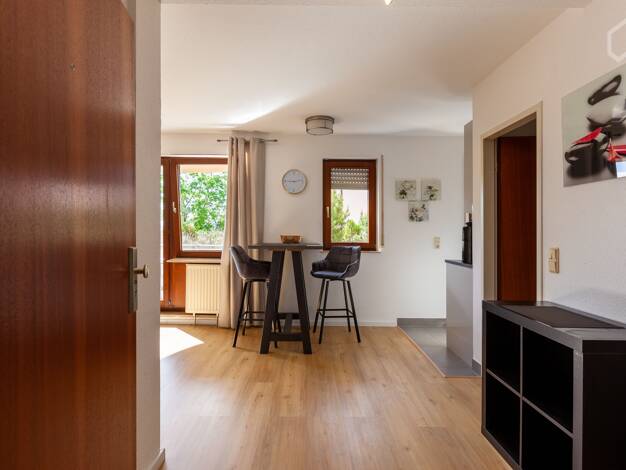 Modern möblierte 2-Zimmer Wohnung mit eigenem Eingang, Stellplatz und Internet direkt am Naherholungsgebiet am Fuße vom Schloss Solitude in Stuttgart Weilimdorf. Öffentliche Verkehrsmittel und Restau...