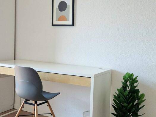 Frei auf Anfrage Möbliertes WG-Zimmer in einer 3-Zimmer-Wohnung im 1. OG eines Mehrfamilienhauses in Stuttgart-Rot. In der Wohnung gibt es zur gemeinsamen Nutzung eine komplett ausgestattete Küche, B...