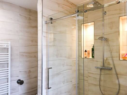 moderne und komfortable 3-Zimmer-Wohnung in Stuttgart-West, EG, 2 Schlafzimmer mit Doppelbett, Wohnzimmer mit Esstisch, WLAN, Küche mit Waschmaschine, Tageslichtbad mit Dusche und WC