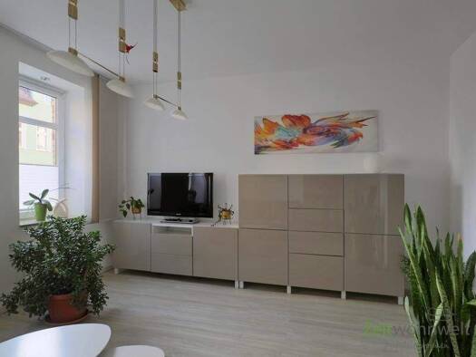 ### Please note the availability date! Bitte das Verfügbarkeitsdatum beachten! ### möblierte 2-Zimmer-Wohnung nahe zur Jenaer Innenstadt; helles Wohnzimmer mit Couch, Sessel, Esstisch, Sideboard und ...