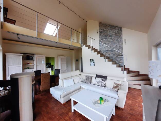 Dieses charmante Maisonette-Apartment erstreckt sich über ca. 60 m² auf zwei Ebenen. Die helle obere Etage bietet einen großzügigen Wohn-/Studio-Bereich, eine offene Wohnküche sowie ein modernes Bade...