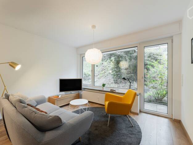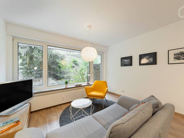 Moderne Wohnung in ruhiger Lage nahe Unterbacher See - vollständig möbliert und bezugsfertig! Diese sanierte Wohnung in einem Gebäude aus den 60er-Jahren bietet Ihnen modernen Wohnkomfort in einer ru...