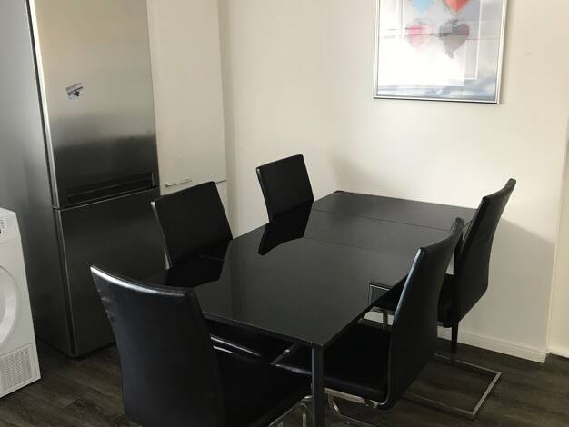 Modern möbliertes Nichtraucher-Apartment für Wochenendpendler im 1. OG, sehr hell durch die bodentiefen Fenster. Wohn-/Schlafraum mit Schlafcouch, Digital-TV, Sat-TV, Vinylboden mit Fußbodenheizung, ...