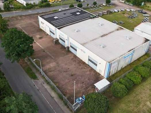 Die im Jahr 1992 errichtete moderne Lagerhalle bietet im Erdgeschoss sowie im Obergeschoss integrierte Büro- und Sozialbereiche mit großen Fensterflächen. Das in robuster Stahl-Skelettbauweise mit vo...