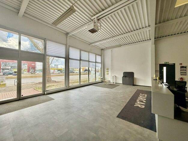 Moderne Gewerbeflächen in verkehrsgünstig gelegenem Gewerbegebiet: Aktuell können ca. 275 m² Verkaufsflächen im Erdgeschoss mit ca. 65 m² Sozialflächen im Untergeschoss angemietet werden. Die Verkauf...