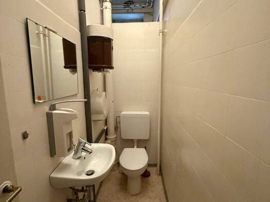 Die sanierten Gewerbeeinheit wurden sehr modern und stilvoll gestaltet. Neben der Verkaufsfläche mit der schönen Theke stehen zwei Sanitärbereiche sowie ein Abstellraum zur Verfügung. Aufgrund der ze...