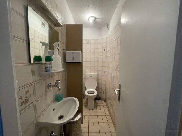 Das Gewerbeobjekt befindet sich umgeben von Mehrfamilienhäusern in einer frequentierten Lage. Der Boden ist hell gefliest, im hinteren Bereich kann man ein Personalraum oder ein Backoffice eingericht...