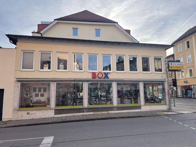 Das 1975 erbaute Gebäude beherbergt aktuell einen Textileinzelhandel. Die Verkaufsfläche erstreckt sich über drei Etagen. Die einzelnen Flächen gliedern sich wie folgt: Keller 133 m² EG 388 m² 1.OG 4...