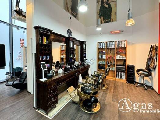 Diese als Friseursalon genutzten Gewerberäumlichkeiten bieten im vorderen Teil zwei reizvolle Schauräume. Im hinteren Teil steht ein weiterer Raum zur Verfügung. Daneben gibt es ein elegantes WC und ...