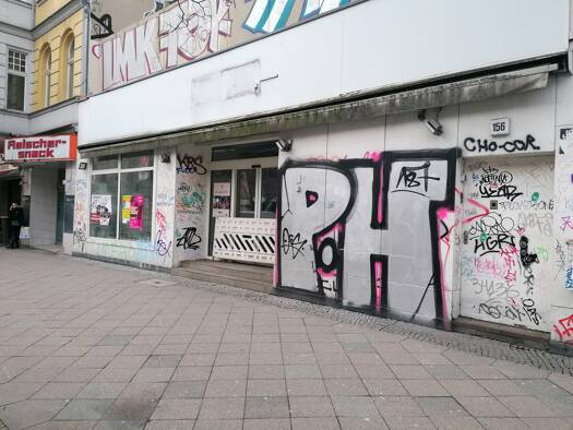 Der Laden befindet sich im Erdgeschoss eines historischen Bürohauses, in Ecklage als Abschluss einer Ladenzeile neben weiteren Läden mit Gastronomieangebot. Benachbart gibt es bereits Pizza, Bäcker, ...