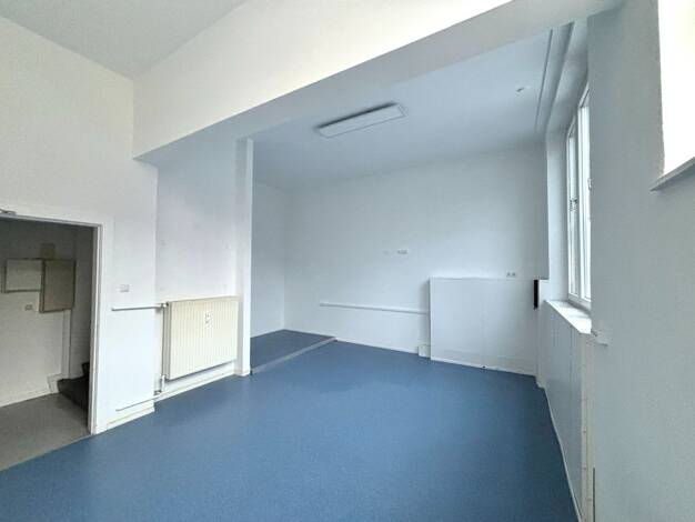 Die hier zur Vermietung stehende Gewerbefläche von ca. 135 m² teilt sich in Erdgeschoss und Untergeschoss eines viergeschossigen Geschäftshauses auf. Über den seitlichen Eingang gelangt man in den he...