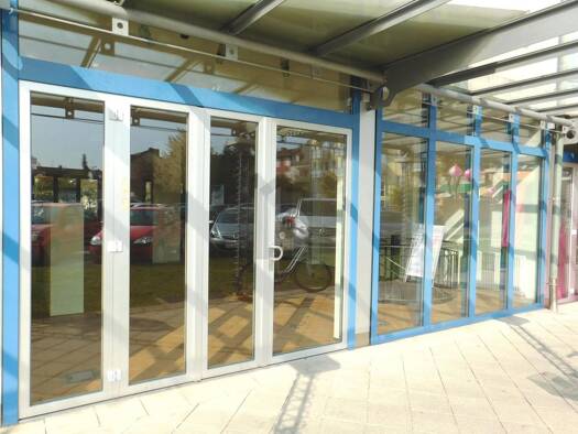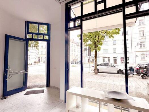 Die Ladenfläche besticht durch eine großzügige, bodentiefe Schaufensterfront, die für eine sehr gute Sichtbarkeit, viel Tageslicht und eine hochwertige Präsentation sorgt. Die Raumwirkung wird durch ...