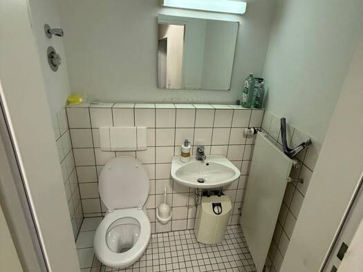 Neben der großen Verkaufsfläche mit den zwei Toiletten, steht im hinteren Bereich ein kleines Lager (35,5 m²), sowie eine kleine Teeküche (6m²) zur Verfügung. Hier befindet sich auch der Hintereingan...