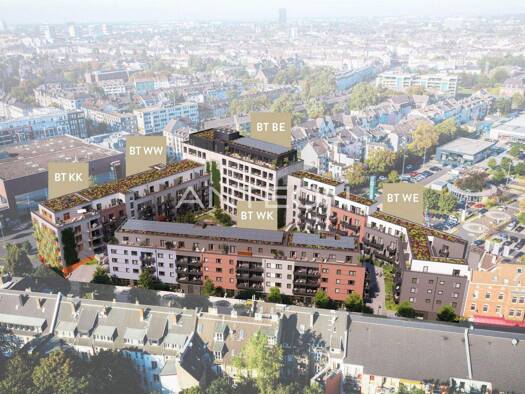 Vier separate Gebäudeteile (A, B, C, D) sichern den Mietern eine große Individualität zu. Darüber hinaus können in der objekteigenen Tiefgarage Stellplätze für Mitarbeiter und Besucher angemietet wer...