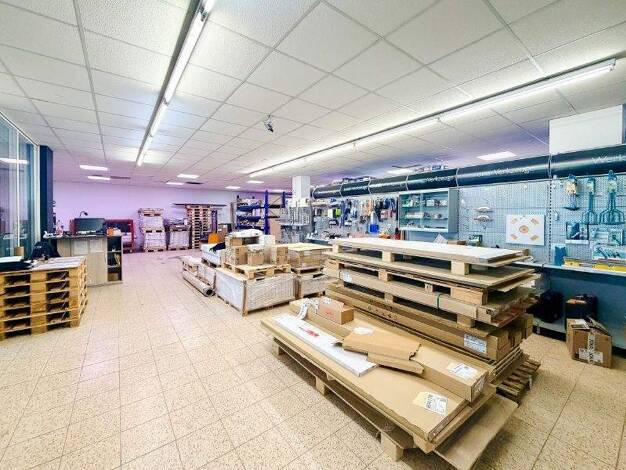 Das Gewerbe wurde lange und erfolgreich von einem Innenausstatter geführt. In unmittelbarer Nähe gibt es eine Bushaltestelle und Parkmöglichkeiten direkt auf dem Grundstück. Über einen zusätzlichen H...