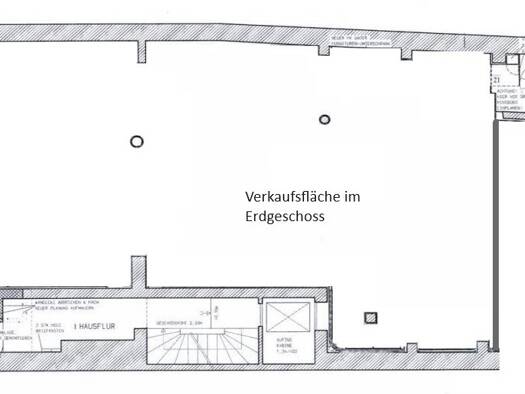 - Verkaufsfläche ca. 158 m² - Personalraum ca. 7 m² - Nebenflächen (Sanitär) ca. 4 m² - Anlieferung ca. 9 m² - Gesamtfläche ca. 178 m² - Barrierefrei im Erdgeschoss - Sanitär Damen und Herren getrenn...
