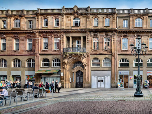 Durch die historischen Fassade, wirkt das Ladenlokal sehr einladend und stilvoll. Im Erdgeschoss befinde sich attraktive Einzelhandelslokale und Gastronomie. In den Obergeschossen befinden sich die V...