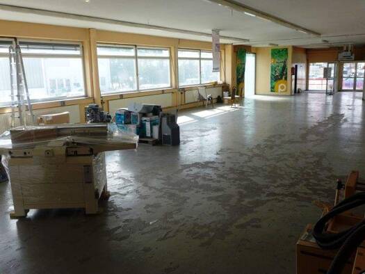 Große und helle Verkaufs- und Ausstellungsfläche mit vielen vorliegenden Stellplätzen. Büro- und Sozialräume sind angegliedert.