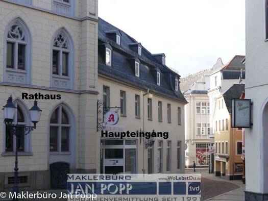 Objektbeschreibung Das Ladenlokal im Erdgeschoss des Wohn- und Geschäftshauses befindet sich zentral und direkt am Werdauer Markt. Hier herrscht ein reges Marktleben. Rathaus, Sparkasse, Volksbank, B...