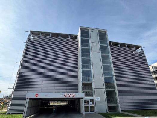 Das Parkhaus ist ebenerdig, wurde komplett renoviert vor 5 Jahren und da es ehemals ein Trambahnhof war, ist der Zugang durch ein großes elektrisch zu öffnendes Tor und breite Zwischenwege äußerst an...