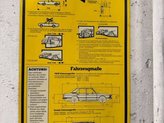 Obere Plattform: - max. Länge 5,00 m - max. Breite 1,90 m - max. Höhe 1,50 m - max. Stellplatzbelastung 2000 kg Untere Plattform: - max. Länge 5,00 m - max. Breite 1,90 m - max. Höhe 1,75 m - max. St...