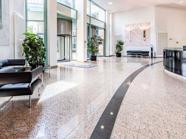 Objekt Repräsentativer Bürokomplex mit moderner Architektur und großzügigem Eingangsbereich. Das Gebäude bietet hochwertige, funktionale Büroflächen mit flexiblen Raumkonzepten. Große Fensterflächen ...