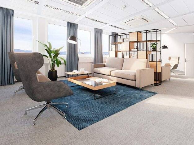 Das Büro ist ebenerdig zugänglich und vollständig barrierefrei, sodass es für Kunden und Mitarbeiter gleichermaßen komfortabel erreichbar ist. Die Fläche umfasst entweder 5 gut geschnittene Büroräume...