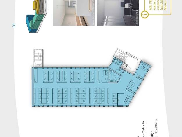 Wir präsentieren Ihnen diese moderne Fläche mit Aufzug - mit 360°-Grad-Rundgang. Sie erreichen die Gewerbefläche im 2. Obergeschoss über den Aufzug oder das Treppenhaus und betreten den ersten Teil d...