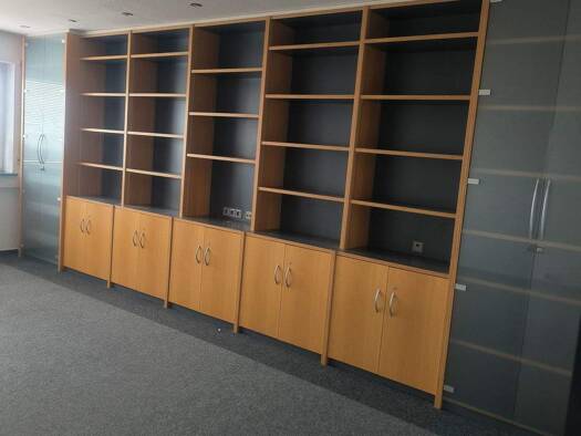 Gleich im Eingangsbereich der Mietfläche ist ein Büroraum mit einer kleinen Empfangstheke. Es gibt zwei weitere Einzelbüros sowie ein größerer Besprechungsraum. Das WC ist mit einer Dusche ausgestatt...
