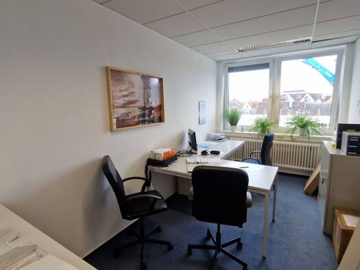 Die Bürofläche verteilt sich auf zwei helle Räume, die durch großzügige Fensterfronten viel Tageslicht bieten. Einer der Räume bietet eine großzügige Bürofläche und kann als Großraumbüro genutzt werd...