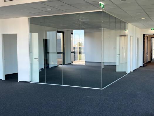 Dieses moderne Bürogebäude bietet eine Gesamtfläche von ca. 320 m². Das Erdgeschoss umfasst ca. 140 m² und bietet einen einladenden Eingangsbereich, Konferenzräume, eine Küche sowie einen kleinen Bes...