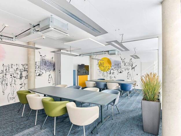 Arbeiten Sie hochkonzentriert auf zwei Etagen des modernen Gebäudes, wo alle Büroräume voll ausgestattet sind. Die dezente Farbauswahl sowie die zahlreichen Fenster sorgen für viel Licht in den Räume...