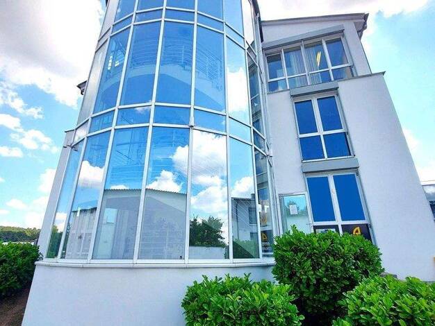 Bürofläche in einem repräsentativem Gebäude Baujahr 1999 moderne Architektur ruhige Lage in einem leistungsstarken Gewerbegebiet Personenaufzug Treppenhaus mit Granitstufen und Spiegelglas Fassade ge...