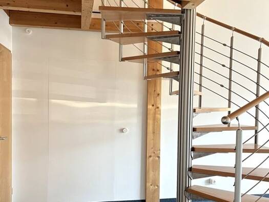 Die Gewerberäume: Gut durchdachte Grundrisse, drei helle, ruhige Räume. Zusätzlich erreicht man über eine elegante Wendeltreppe die verglaste Galerie mit Holzdecke. Insgesamt eine besonders anspreche...