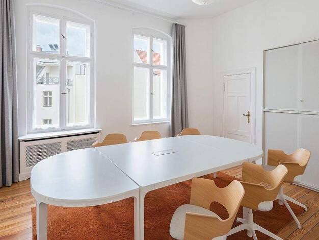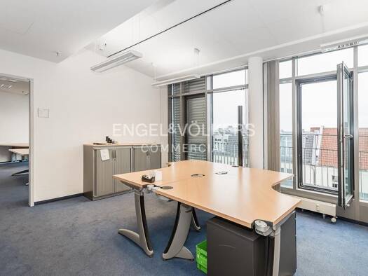 Das Herzstück dieser Büros bildet zweifellos der liebevoll restaurierte Altbau, der mit seinem historischen Flair und dem gepflegten Parkettboden eine einladende Atmosphäre schafft. Die großen Fenste...
